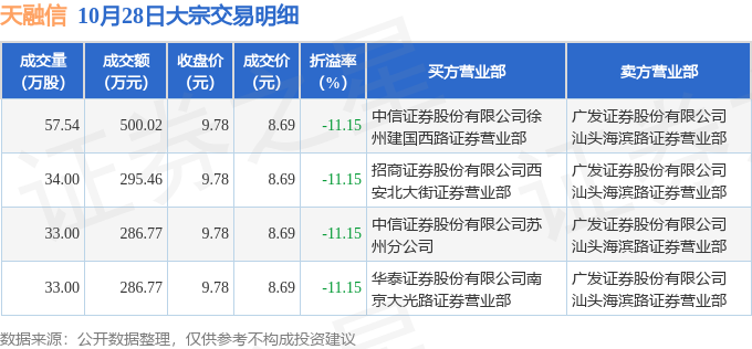 证券之星消息,10月28日天融信发生大宗交易,交易数据如下: