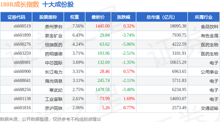 证券之星消息,10月28日,180R成长(000030)指数报收于2640.75点,跌0.96%,成交2441.78亿元,换手率0.87%。当日该指数成份股中,上涨的有46家,金山办公以6.38%的涨幅领涨,下跌的有82家,华友钴业以6.46%的跌幅领跌。