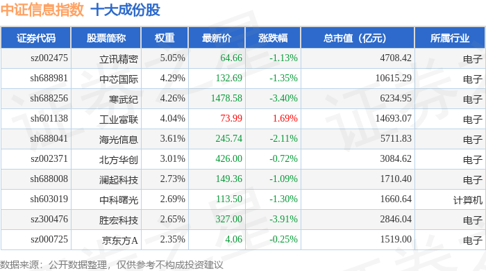 中证信息(000935)指数十大成份股详情如下: