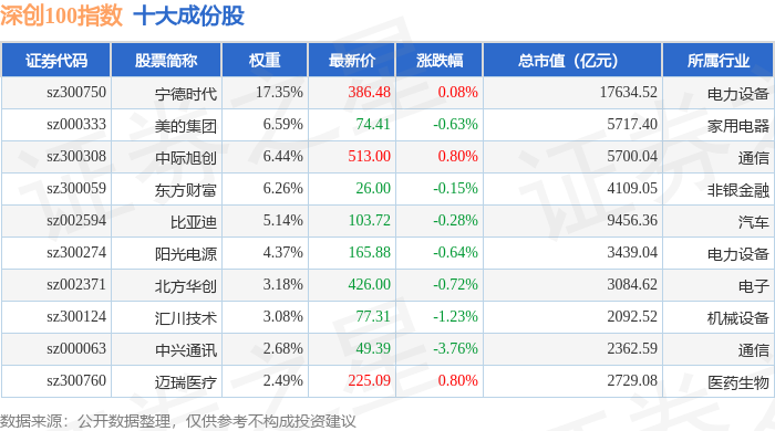 深创100(399088)指数十大成份股详情如下: