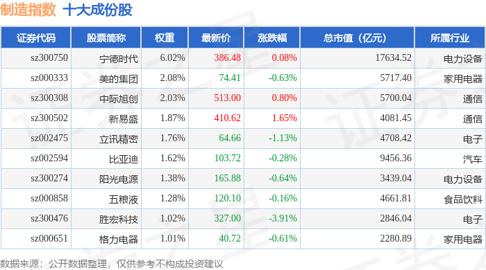 资金流向方面,制造指数(399233)成份股当日主力资金净流出合计248.42亿元,游资资金净流入合计10.27亿元,散户资金净流入合计238.15亿元。成份股资金流向详情见下表: