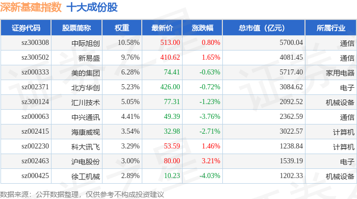 证券之星消息,10月28日,深新基建(399274)指数报收于6011.9点,跌0.22%,成交1534.13亿元,换手率2.69%。当日该指数成份股中,上涨的有20家,沪电股份以3.21%的涨幅领涨,下跌的有30家,德赛西威以7.07%的跌幅领跌。