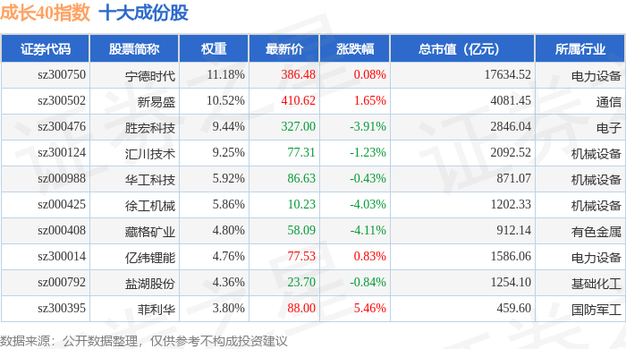 成长40(399326)指数十大成份股详情如下: