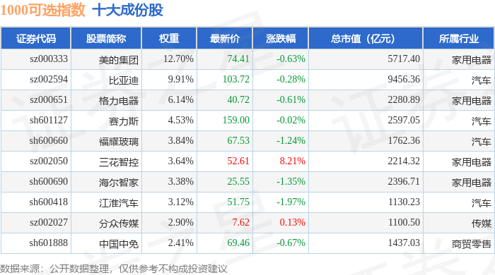 资金流向方面,1000可选(399384)指数成份股当日主力资金净流出合计11.34亿元,游资资金净流入合计3.72亿元,散户资金净流入合计7.62亿元。成份股资金流向详情见下表: