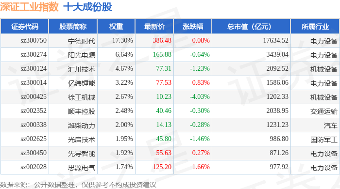 深证工业(399615)指数十大成份股详情如下: