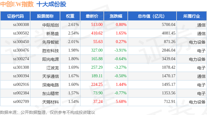 证券之星消息,10月28日,中创EW(399660)指数报收于2757.28点,跌0.35%,成交2904.55亿元,换手率1.8%。当日该指数成份股中,上涨的有39家,三花智控以8.21%的涨幅领涨,下跌的有61家,德赛西威以7.07%的跌幅领跌。