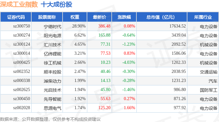深成工业(399682)指数十大成份股详情如下: