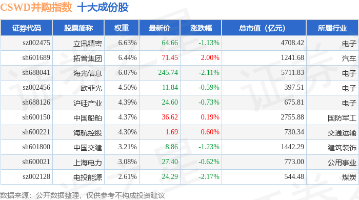 资金流向方面,CSWD并购(399992)指数成份股当日主力资金净流出合计24.25亿元,游资资金净流入合计9.81亿元,散户资金净流入合计14.43亿元。成份股资金流向详情见下表: