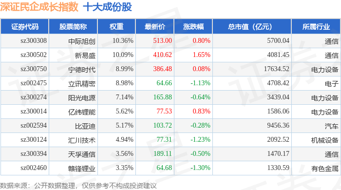 深证民企成长(970071)指数十大成份股详情如下: