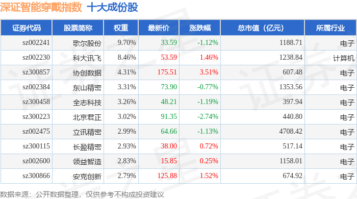 深证智能穿戴(970074)指数十大成份股详情如下: