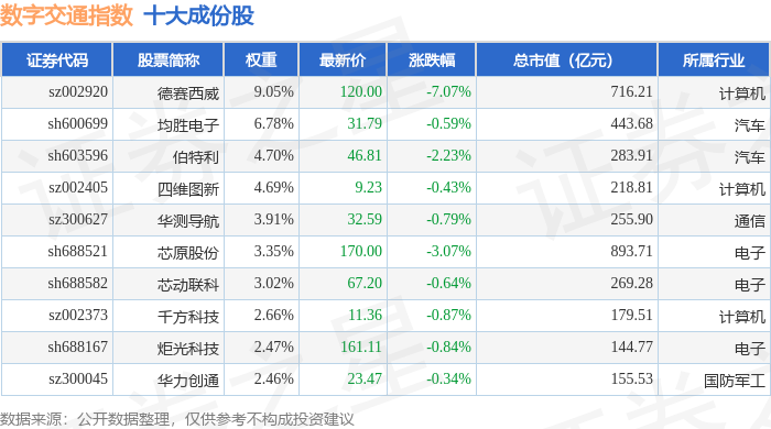 数字交通(980075)指数十大成份股详情如下: