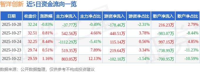 证券之星消息,截至2025年10月28日收盘,智洋创新(688191)报收于32.24元,下跌0.83%,换手率1.03%,成交量2.4万手,成交额7740.35万元。