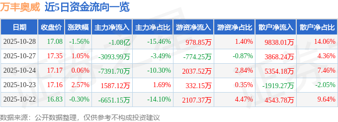 10月28日的资金流向数据方面,主力资金净流出1.08亿元,占总成交额15.46%,游资资金净流入978.85万元,占总成交额1.4%,散户资金净流入9838.01万元,占总成交额14.06%。