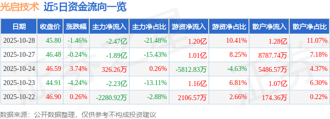 10月28日的资金流向数据方面,主力资金净流出2.47亿元,占总成交额21.48%,游资资金净流入1.2亿元,占总成交额10.41%,散户资金净流入1.28亿元,占总成交额11.07%。