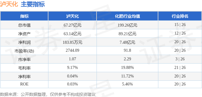 泸天化2025年三季报显示,公司主营收入34.23亿元,同比下降16.79%;归母净利润183.85万元,同比下降97.86%;扣非净利润-3904.48万元,同比下降3576.96%;其中2025年第三季度,公司单季度主营收入10.44亿元,同比下降15.62%;单季度归母净利润-4426.41万元,同比上升7.34%;单季度扣非净利润-4940.32万元,同比上升20.29%;负债率33.27%,投资收益1031.08万元,财务费用-1832.15万元,毛利率9.17%。泸天化(000912)主营业务:合成氨、尿素、复合肥、甲醇、硝酸、硝酸铵溶液等化学原料及化学制品制造和销售。