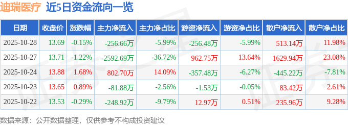 证券之星消息,截至2025年10月28日收盘,迪瑞医疗(300396)报收于13.69元,下跌0.15%,换手率1.15%,成交量3.14万手,成交额4282.94万元。