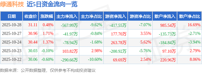 10月28日的资金流向数据方面,主力资金净流出567.99万元,占总成交额9.62%,游资资金净流出417.55万元,占总成交额7.07%,散户资金净流入985.54万元,占总成交额16.69%。