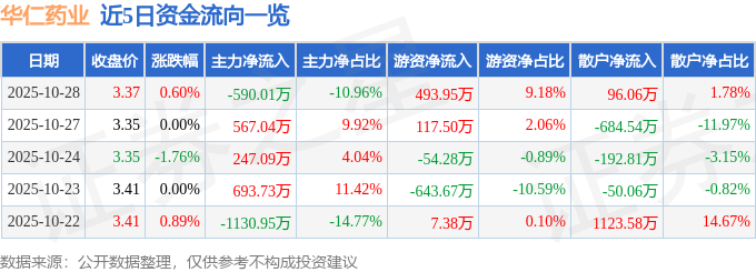 10月28日的资金流向数据方面,主力资金净流出590.01万元,占总成交额10.96%,游资资金净流入493.95万元,占总成交额9.18%,散户资金净流入96.06万元,占总成交额1.78%。
