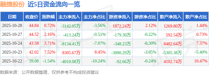 证券之星消息,截至2025年10月28日收盘,融捷股份(002192)报收于44.84元,上涨0.72%,换手率7.49%,成交量19.4万手,成交额8.82亿元。