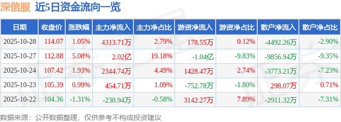 证券之星消息,截至2025年10月28日收盘,深信服(300454)报收于114.07元,上涨1.05%,换手率4.83%,成交量13.43万手,成交额15.47亿元。