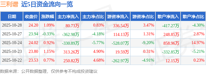 证券之星消息,截至2025年10月28日收盘,三利谱(002876)报收于24.2元,上涨1.09%,换手率2.7%,成交量4.03万手,成交额9702.05万元。