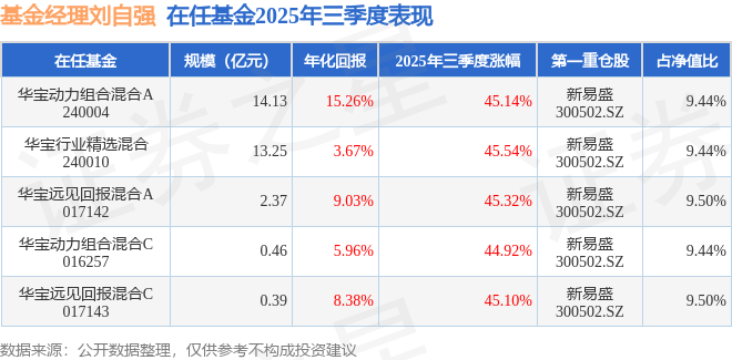 证券之星消息,截止2025年三季度末,基金经理刘自强旗下共管理5只基金,本季度表现最佳的为华宝行业精选混合(240010),季度净值涨45.54%。