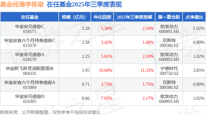 证券之星消息,截止2025年三季度末,基金经理李栋梁旗下共管理6只基金,本季度表现最佳的为华宝新飞跃灵活配置混合(004335),季度净值涨11.33%。