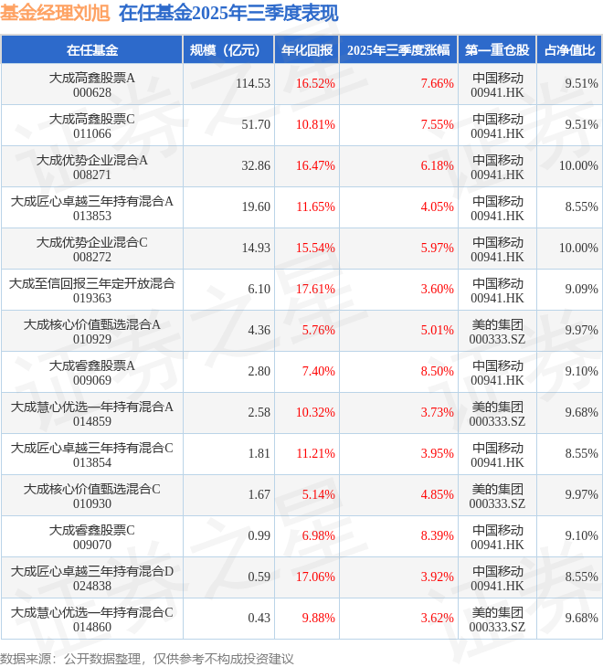 以下为刘旭所任职基金的部分重仓股调仓案例: