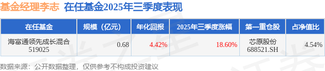 证券之星消息,截止2025年三季度末,基金经理李志管理的海富通领先成长混合(519025)季度净值涨18.6%。