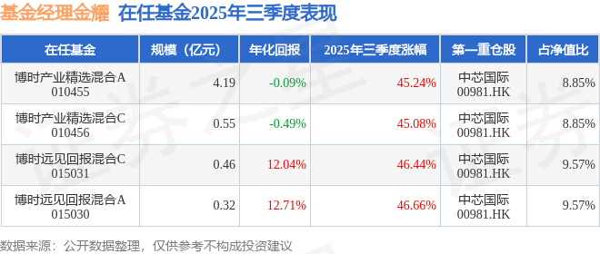 证券之星消息,截止2025年三季度末,基金经理金耀旗下共管理4只基金,本季度表现最佳的为博时远见回报混合A(015030),季度净值涨46.66%。