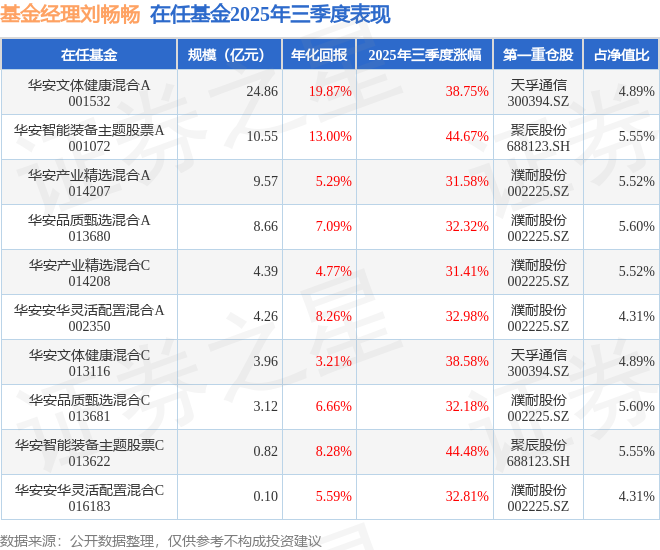 证券之星消息,截止2025年三季度末,基金经理刘畅畅旗下共管理10只基金,本季度表现最佳的为华安智能装备主题股票A(001072),季度净值涨44.67%。