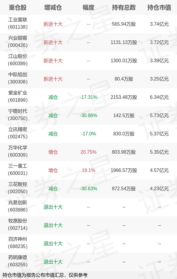 证券之星消息,10月28日中欧基金旗下周蔚文 罗佳明管理的中欧时代先锋股票型发起式基金公布三季报,近1年净值增长率40.66%。与上一季度相比,该基金前十大重仓股新增工业富联,兴业银锡,江山股份,中际旭创;其中紫金矿业持仓占比5.17%,为该基金第一大重仓股;兆易创新,牧原股份,百济神州,药明康德等退出前十大重仓股;详细数据如下: