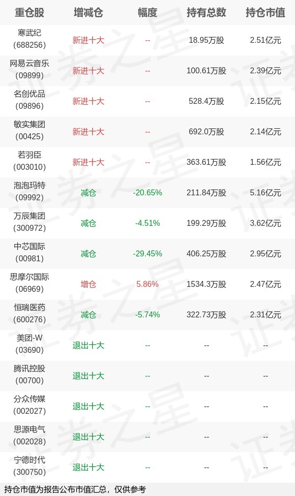 证券之星消息,10月28日东方红资产管理旗下李竞管理的东方红启东三年持有期混合型基金公布三季报,近1年净值增长率26.95%。与上一季度相比,该基金前十大重仓股新增寒武纪,网易云音乐,名创优品,敏实集团,若羽臣;其中泡泡玛特持仓占比8.71%,为该基金第一大重仓股;美团-W,腾讯控股,分众传媒,思源电气,宁德时代等退出前十大重仓股;详细数据如下: