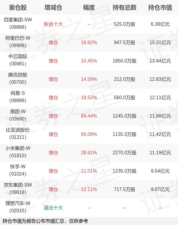 证券之星消息,10月28日天弘基金旗下胡超 LIU DONG (刘冬)管理的天弘恒生科技交易型开放式指数基金联接基金(QDII)公布三季报,近1年净值增长率33.4%。与上一季度相比,该基金前十大重仓股新增百度集团-SW;并对阿里巴巴-W增仓135.0万股,为该基金第一大重仓股;理想汽车-W等退出前十大重仓股;详细数据如下: