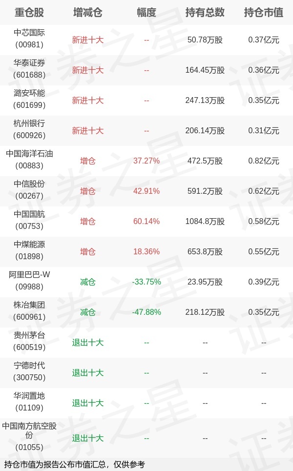 证券之星消息,10月28日景顺长城基金旗下李怡文管理的景顺长城景颐尊利债券型基金公布三季报,近1年净值增长率4.95%。与上一季度相比,该基金前十大重仓股新增中芯国际,华泰证券,潞安环能,杭州银行;并对中国海洋石油增仓128.3万股,为该基金第一大重仓股;贵州茅台,宁德时代,华润置地,中国南方航空股份等退出前十大重仓股;详细数据如下: