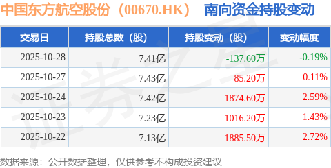 证券之星消息,10月28日南向资金减持137.6万股中国东方航空股份(00670.HK)。近5个交易日中,获南向资金增持的有4天,累计净增持4723.9万股。近20个交易日中,获南向资金增持的有17天,累计净增持1.26亿股。截至目前,南向资金持有中国东方航空股份(00670.HK)7.41亿股,占公司已发行普通股的14.3%。