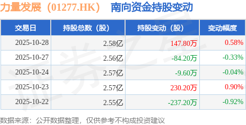 证券之星消息,10月28日南向资金增持147.8万股力量发展(01277.HK)。近5个交易日中,获南向资金增持的有2天,累计净增持47.0万股。近20个交易日中,获南向资金减持的有10天,累计净减持1304.8万股。截至目前,南向资金持有力量发展(01277.HK)2.58亿股,占公司已发行普通股的3.05%。