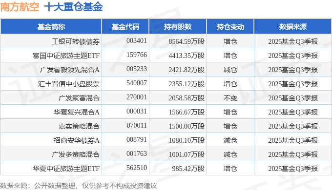 持有南方航空最多的基金为工银可转债债券,目前规模为51.69亿元,最新净值1.8599(10月27日),较上一交易日上涨0.16%,近一年上涨15.81%。该基金现任基金经理为黄诗原。