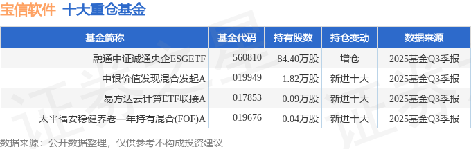持有宝信软件最多的基金为融通中证诚通央企ESGETF,目前规模为6.6亿元,最新净值1.1358(10月28日),较上一交易日上涨0.1%。该基金现任基金经理为蔡志伟 吕寒。