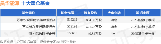 持有昊华能源最多的基金为万家宏观择时多策略混合A,目前规模为6.44亿元,最新净值2.4913(10月28日),较上一交易日下跌1.51%,近一年下跌1.66%。该基金现任基金经理为黄海。