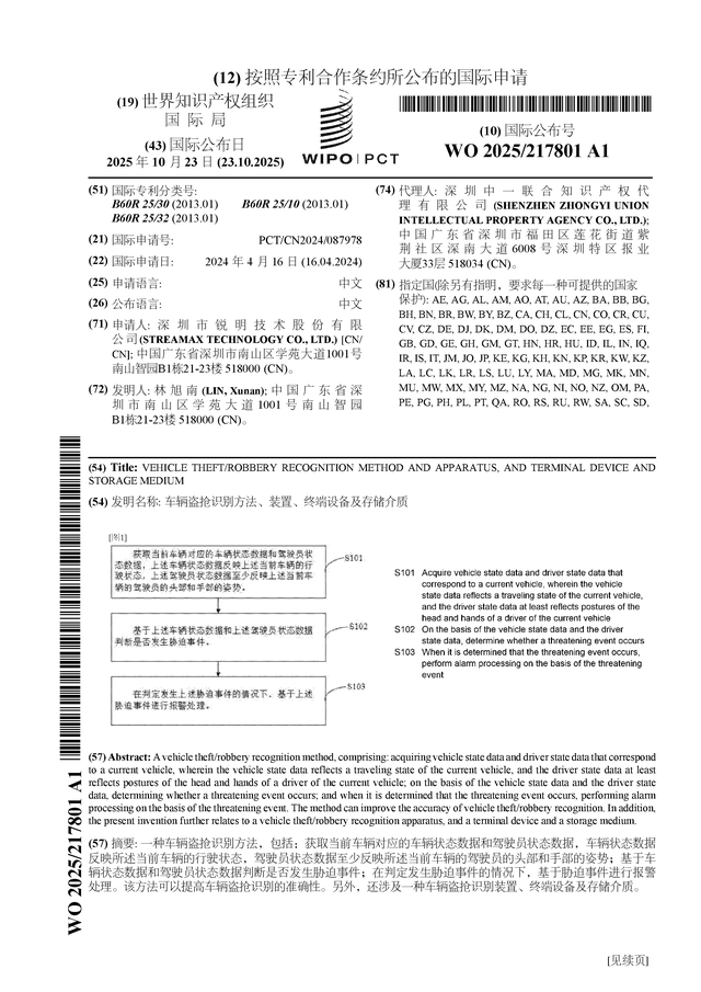 证券之星消息,根据企查查数据显示锐明技术(002970)公布了一项国际专利申请,专利名为“车辆盗抢识别方法、装置、终端设备及存储介质”,专利申请号为PCT/CN2024/087978,国际公布日为2025年10月23日。
