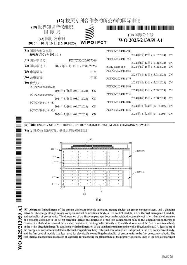 证券之星消息,根据企查查数据显示宁德时代(300750)公布了一项国际专利申请,专利名为“储能装置、储能系统及充电网络”,专利申请号为PCT/CN2025/077666,国际公布日为2025年10月16日。