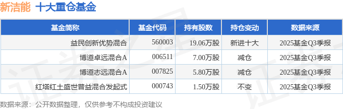 持有新洁能最多的基金为益民创新优势混合,目前规模为4.34亿元,最新净值1.3714(10月28日),较上一交易日上涨0.23%,近一年上涨15.16%。该基金现任基金经理为张婷 马泉林。