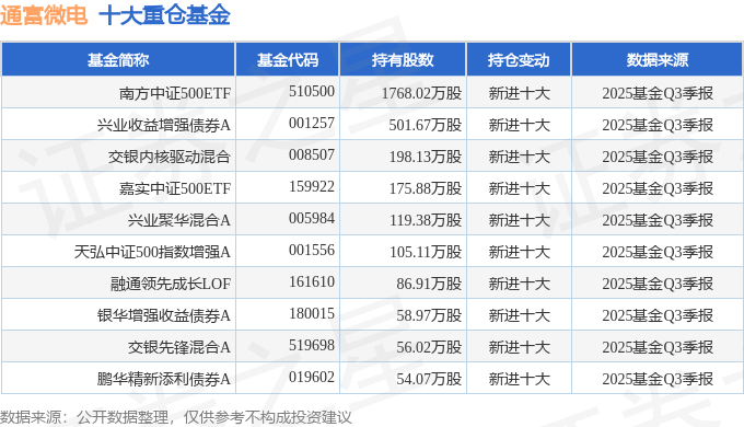 持有通富微电最多的基金为南方中证500ETF,目前规模为400.98亿元,最新净值7.4461(10月28日),较上一交易日下跌0.51%,近一年上涨28.79%。该基金现任基金经理为罗文杰。