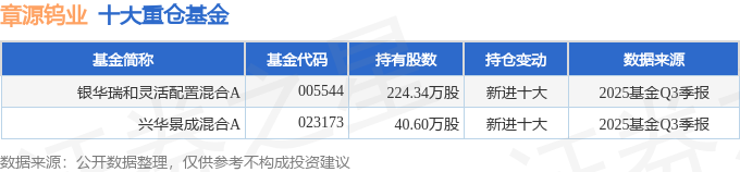 持有章源钨业最多的基金为银华瑞和灵活配置混合A,目前规模为5.52亿元,最新净值1.6961(10月27日),较上一交易日上涨1.83%,近一年上涨48.14%。该基金现任基金经理为周书 张腾。