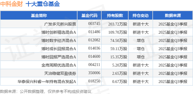 持有中科金财最多的基金为广发多元新兴股票,目前规模为22.9亿元,最新净值2.0315(10月27日),较上一交易日上涨0.92%,近一年上涨28.48%。该基金现任基金经理为周智硕。