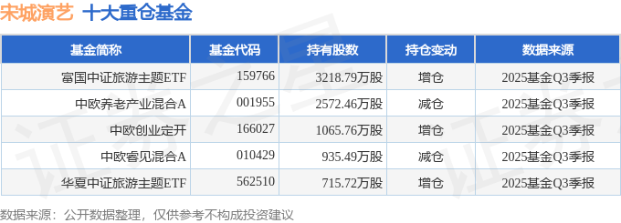 持有宋城演艺最多的基金为富国中证旅游主题ETF,目前规模为49.27亿元,最新净值0.7213(10月28日),较上一交易日下跌0.01%,近一年上涨4.38%。该基金现任基金经理为曹璐迪。