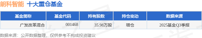持有朗科智能最多的基金为广发改革混合,目前规模为2.33亿元,最新净值1.109(10月28日),较上一交易日下跌0.54%,近一年上涨23.48%。该基金现任基金经理为陈少平。