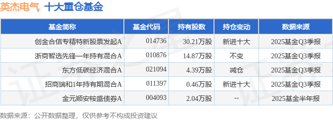 持有英杰电气最多的基金为创金合信专精特新股票发起A,目前规模为1.07亿元,最新净值1.6764(10月27日),较上一交易日上涨3.18%,近一年上涨50.78%。该基金现任基金经理为王先伟。