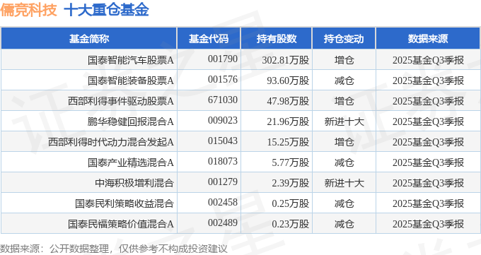 持有儒竞科技最多的基金为国泰智能汽车股票A,目前规模为45.21亿元,最新净值2.4287(10月28日),较上一交易日上涨1.08%,近一年上涨35.67%。该基金现任基金经理为王阳。